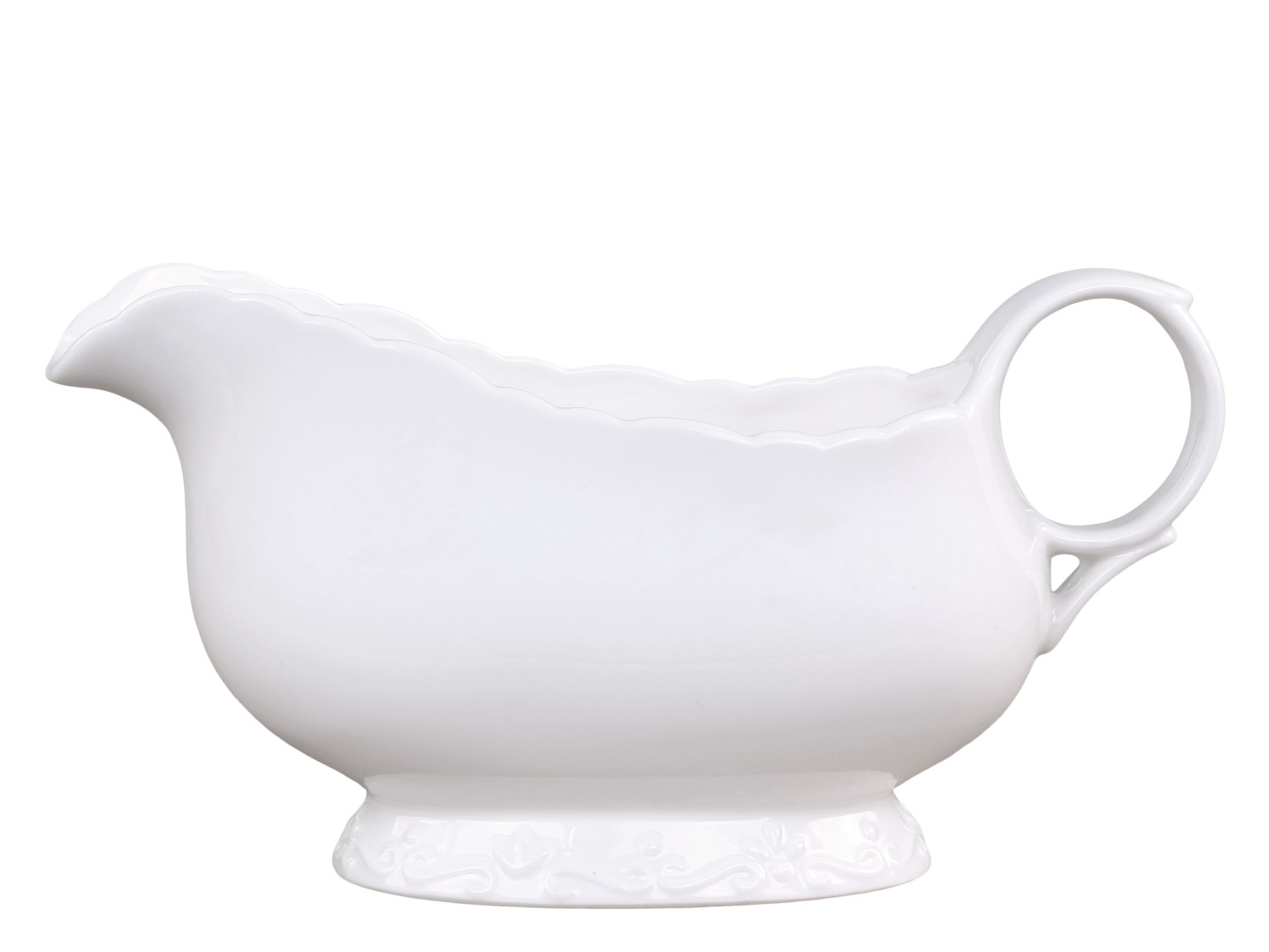 Porcelánový omáčník bílý provence se zdobeným okrajem. Skvěle poslouží k servírování omáčky, smetany nebo mléka. Krásný kousek pro milovníky francouzského stylu. Nádobí je vhodné do myčky nádobí.