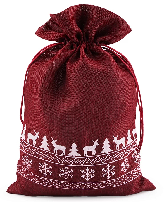 Dárkový pytlík s vánočním motivem bordó 20 x 30 cm