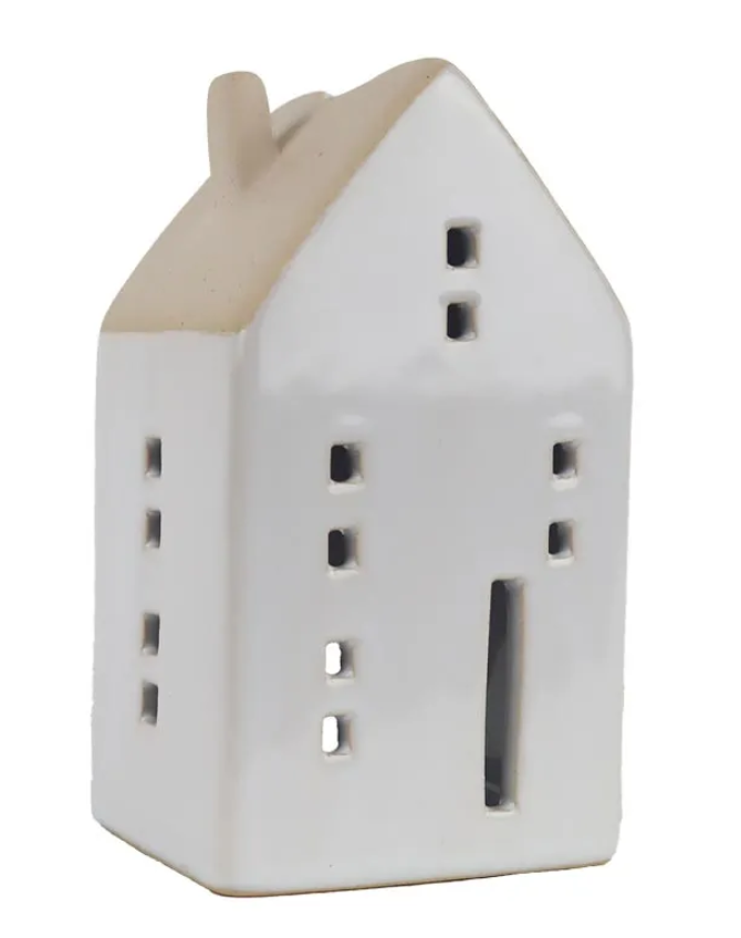 Domek na svíčku dekorační keramický bílý
