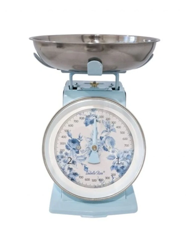 Vneste do své kuchyně kouzlo minulých let s kuchyňskou retro váhou Nathalie od značky Isabelle Rose.Tato stylová váha v pastelově modré barvě kombinuje vintage design s praktickým využitím, čímž se stává nejen funkčním pomocníkem, ale i dekorativním prvkem vaší kuchyně. Váha je vyrobena z kvalitního kovu a je doplněna nerezovou miskou, kterou lze mýt v myčce nádobí.Maximální nosnost váhy je 3 kg s přesností vážení po 10 gramech, což umožňuje přesné měření surovin pro vaše kulinářské výtvory.Díky dobře čitelnému ciferníku s kovovou ručičkou budete mít vždy přehled o hmotnosti vážených ingrediencí.