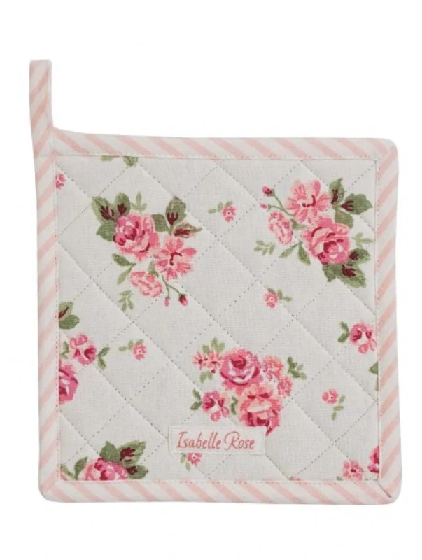 Elegantní textilní podložka nebo chňapka z kolekce Lucy značky Isabelle Rose. Vyrobená z kvalitní 100% bavlny, prošívaná konstrukce poskytuje efektivní ochranu pracovních ploch před horkem. V jemném bílém a růžovém provedení dodá vaší kuchyni šarm v retro stylu. Praktický doplněk pro každodenní i slavnostní chvíle.