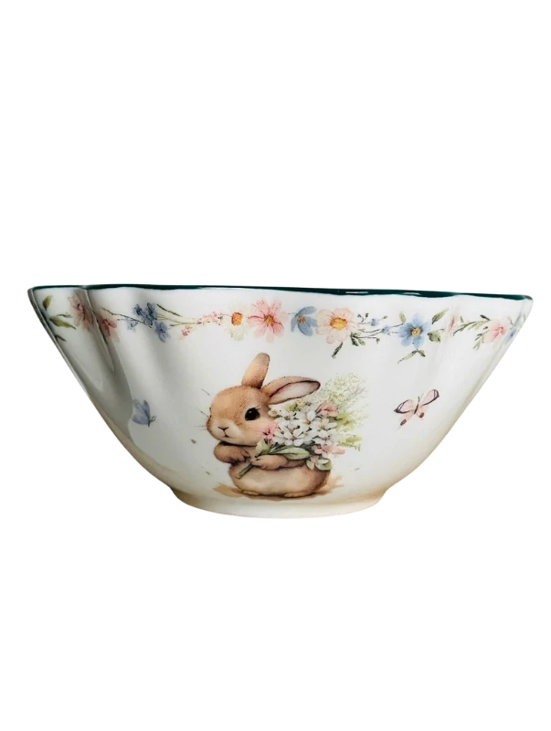Elegantní motiv zajíčka dodává kus veselé jarní nálady a originality - je to detail, který udělá z obyčejného servírování zážitek. Hodí se skvěle do rodinné kuchyně, ale i na slavnostně prostřený stůl během svátečních dní. Tento přívětivý designový prvek navíc perfektně doplňuje další tematické stolní doplňky a porcelánové kolekce.