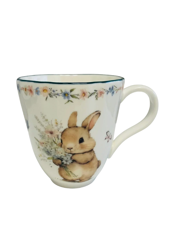 Motiv zajíčka evokuje svěží jaro, Velikonoce i útulnou atmosféru domova — ideální pro ty, kdo milují originální jarní doplňky a krásné porcelánové nádobí. Tento porcelánový hrnek je odolný, hygienický a snadno se udržuje — většina podobných hrnků s objemem 350 ml je vhodná pro myčku i mikrovlnnou troubu, což zvyšuje jeho praktičnost pro každodenní použití.