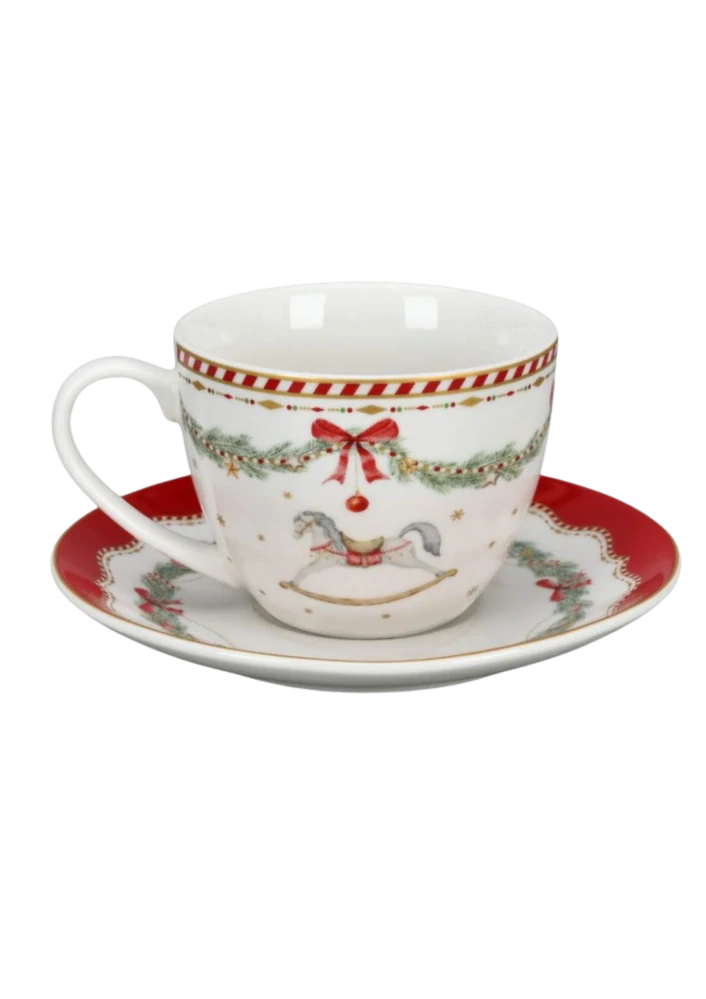 Vánoční porcelánový šálek s podšálkem Happy Holidays 250 ml