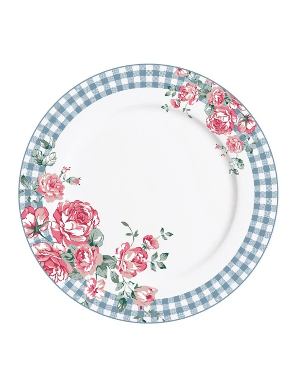 Vneste do svého stolování jemný květinový nádech s porcelánovým talířem Julia od Isabelle Rose. Klasický bílý porcelán zdobí decentní květy růží v pastelových odstínech modré a růžové – ideální pro styl vintage či cottage. Díky velkému průměru 23 cm je talíř vhodný pro hlavní jídla, saláty i romantické večeře. Překvapí při rodinných chvílích i při slavnostních příležitostech svou elegancí.