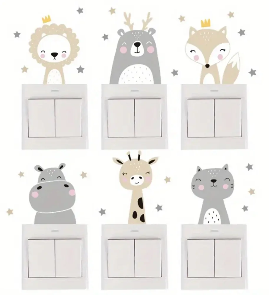 Dekorační samolepky zvířátka na vypínač, která udělá radost při každém použití vypínače. Vhodné do dětského pokoje.