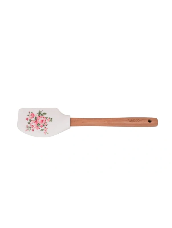 Silikonová stěrka s dřevěnou rukojetí bílá s květy 32 cm