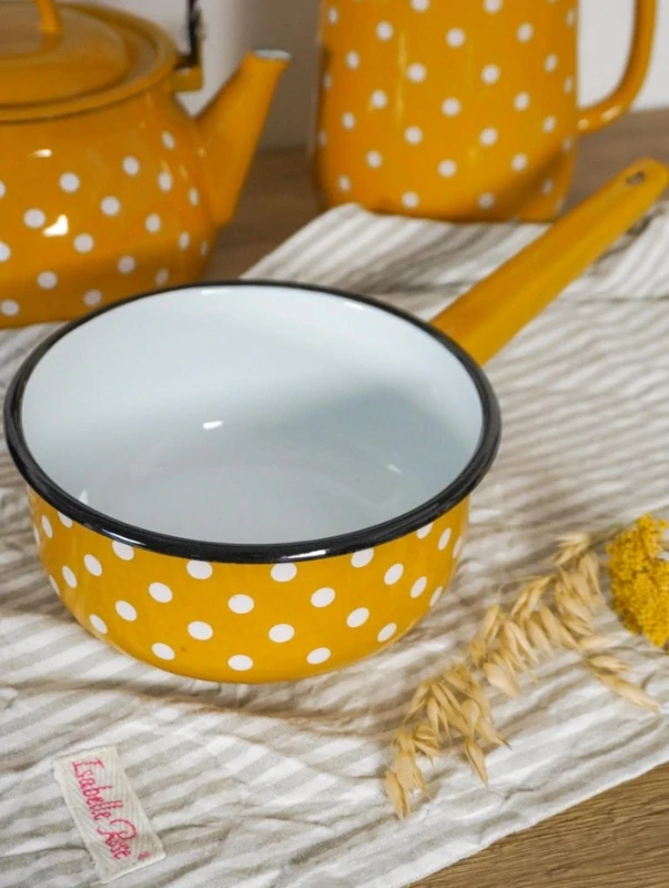 Smaltovaná pánev na omáčky s puntíky hořčicová 1500 mlK odeslání IHNED 4 ks499,00 CZK/ ks412,40 CZK bez DPH